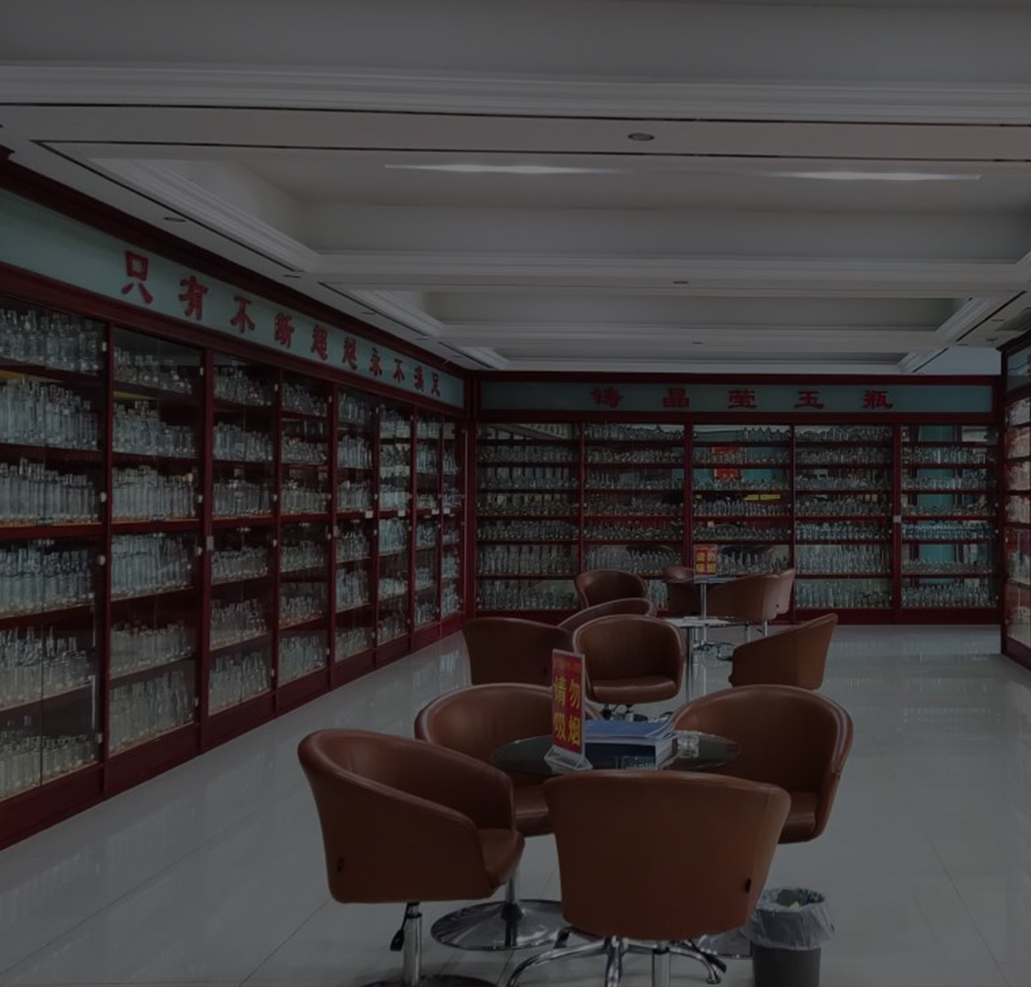 Entering the glass wine bottle exhibition hall,